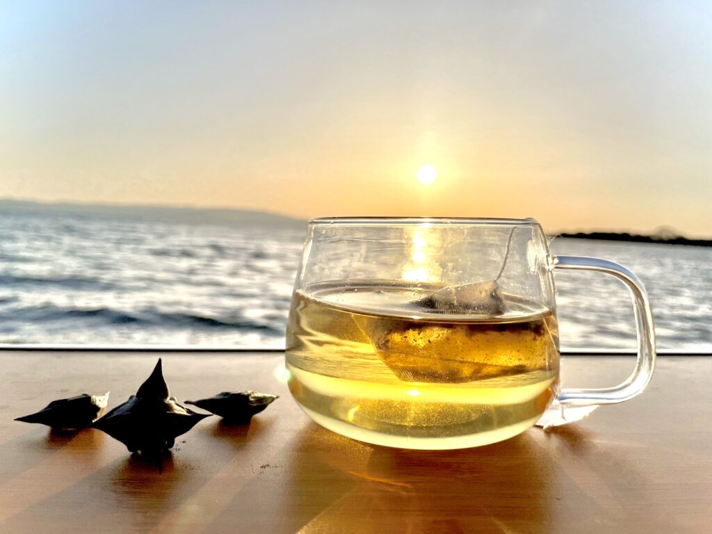収穫された菱の実は、食材としてだけでなく、乾燥・焙煎することで香ばしいお茶として楽しむことができます。