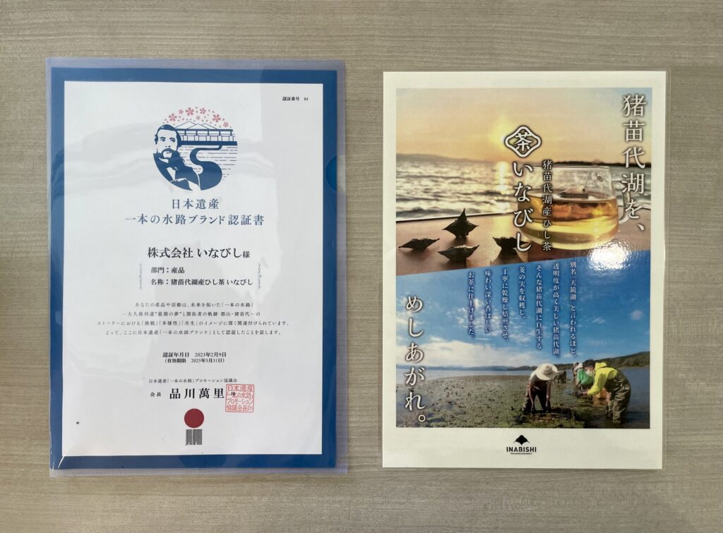猪苗代湖の菱の実から作られた「猪苗代湖産ひし茶」 は、日本遺産「一本の水路」ストーリーにおける産品部門のブランド認証を受けています。